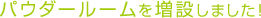 女性の方の診療の後は、メイクもみだれがち。二台ある広々としたパウダールームには洗口剤や綿棒や油取り紙が備えられています。ゆっくりとお化粧直しをしてお帰り下さい。